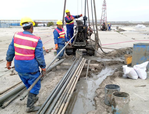 本項目位于江蘇南通市如東縣黃海海濱輻射沙洲的西太陽沙人工島,已建成投入使用的接收站工程主要由工藝系統、輔助生產系統和公用工程系統組成,包括3座儲存容積為16萬立方米的LNG全包容儲罐和1座儲存容積為20萬立方米的LNG全包容儲罐及其配套的接收、儲存、加壓和氣化輸出設施,以及相關的構筑物等。為滿足生產需要,需擴建2座20萬立方米的LNG儲罐,罐體直徑88.0m,基礎擬采用高承臺樁基,樁徑1.0~1.5m,單樁承載力特征值至少達到8100kN,我公司承擔2座20萬立方米的LNG儲罐巖土工程勘察工作。