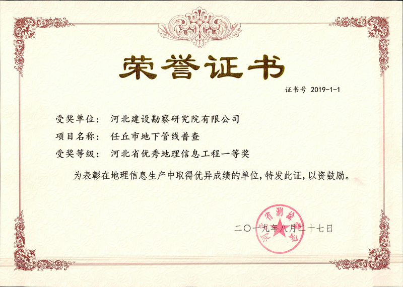 近日,由我公司完成的“任丘市地下管線普查項(xiàng)目”榮獲河北省測繪學(xué)會優(yōu)秀地理信息工程一等獎(jiǎng),“江蘇大唐國際呂四港有限責(zé)任公司廠區(qū)沉降觀測”、“浙江大唐烏沙山發(fā)電廠主要建(構(gòu))筑物沉降觀測”項(xiàng)目榮獲河北省測繪學(xué)會優(yōu)秀地理信息工程二等獎(jiǎng)。