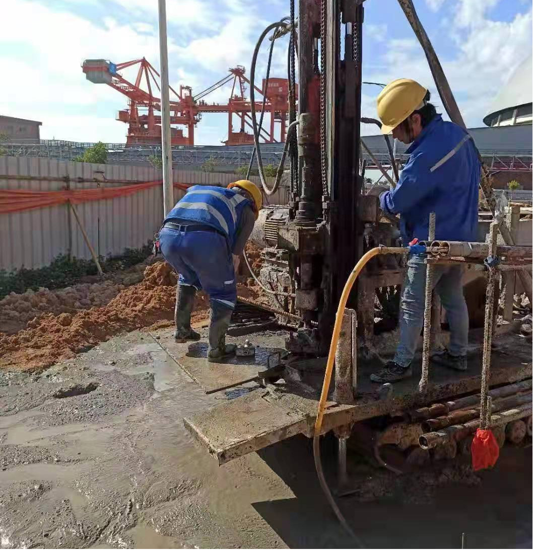 本工程建設(shè)地點位于廣東省汕尾市,受陸豐寶麗華新能源電力有限公司委托,我公司承擔(dān)本項目樁基施工。工程量包括Φ1000mm的灌注樁80根、Φ700mm的高壓旋噴樁樁80根。灌注樁為嵌巖樁,混凝土強度等級為C30,設(shè)計要求嵌入中風(fēng)化巖層,且嵌巖深度不小于1D,且樁長不小于15m。高壓旋噴樁樁體有效直徑700mm,有效樁長不小于9m,同時滿足樁底標(biāo)高達到強風(fēng)化花崗巖面。