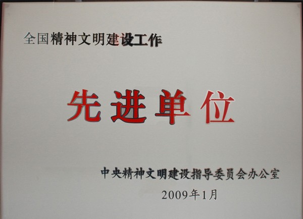 近年來,我公司堅持以科學發展觀為指導,在全體員工中積極開展精神文明創建活動,文明施工程度和員工素質不斷提高,精神文明建設取得顯著成績。近日,我公司受到中央精神文明建設指導委員會辦公室表彰,被授予“全國精神文明建設工作先進單位”稱號。