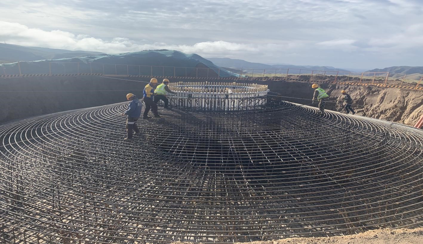 本項目采用了可更換基礎(chǔ)預(yù)應(yīng)力錨栓組件,解決了傳統(tǒng)的埋入式基礎(chǔ)環(huán),預(yù)應(yīng)力錨栓抗疲勞性能差,應(yīng)力不均勻,不方便后期錨栓組件維修保養(yǎng)等問題。由于每個風(fēng)機基礎(chǔ)混凝土用量較大,屬于大體積混凝土澆筑,為防止產(chǎn)生混凝土裂縫,我們嚴(yán)格控制混凝土澆筑過程中的溫度和混凝土養(yǎng)護過程中內(nèi)外部溫差。同時,預(yù)應(yīng)力錨栓組件、錨栓的垂直度和錨板的水平度控制是直接影響風(fēng)機塔筒穩(wěn)定性的關(guān)鍵因素,施工難度大。