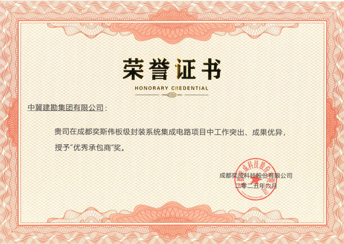 同心聚力 共賦“芯”章——集團公司獲得成都奕成科技股份有限公司“優(yōu)秀承包商”榮譽